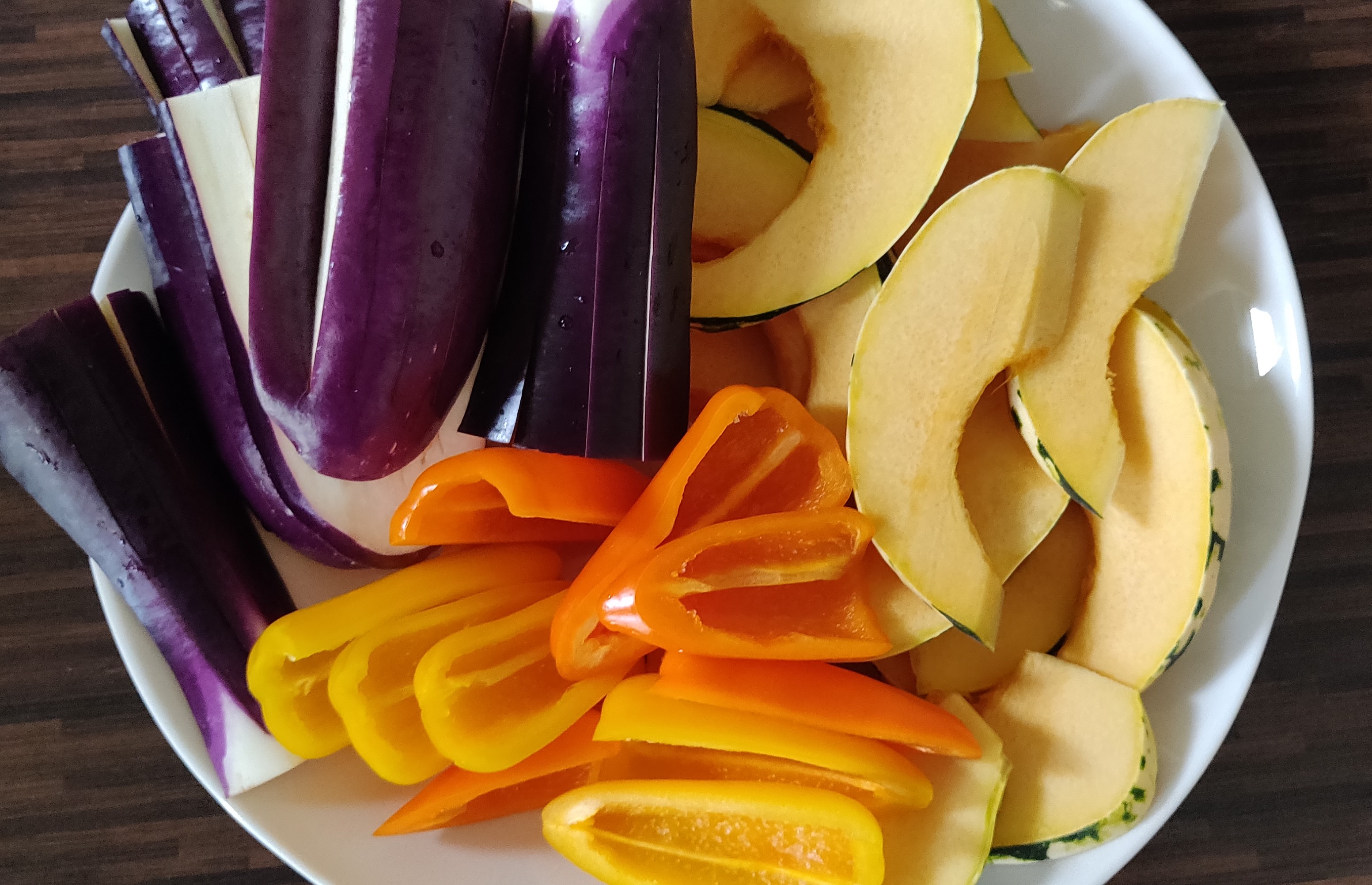- Prepare fish and vegetables. You should cut them relatively thin and around 2 bite sized. The eggplant is cut to a fan-like shape. Take care that the fish is completely boneless.